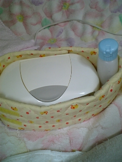 (このおしりふきウォーマーってば、娘の時も同じタイプを使用していたのですが、哺乳瓶もまけるから、ミルク作って保温してもらって、おっぱいを20分とかした後にすぐ飲ませたり。結構便利だったりします)
